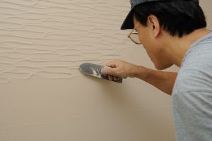 当社自慢の職人がひとつひとつに魂を込めながら仕上げられる壁は他には無い唯一の壁です。同じ材料でも天気、温度、湿度、コテの動き、乾燥の度合いでまったく別の表情になります。クロスのように均一でどこを見ても同じ表情・パターンという壁ではありません。
